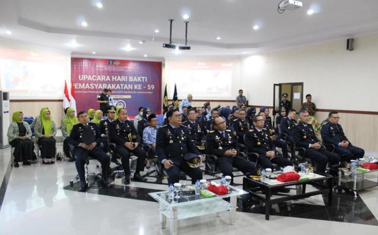 Hari Bhakti Pemasyarakatan Ke-59 menjadi momentum yang tepat bagi insan Pemasyarakatan untuk sejenak merenung dan merefleksikan Kembali serta memetik hikmah dari perjuangan para pendahulu. Peringatan Hari Bhakti Pemasyarakatan Ke-59 Tahun 2023 oleh Jajaran Kementerian Hukum dan HAM khususnya Direktorat Jenderal Pemasyarakatan. Kegiatan ini menjadi puncak pelaksanaan serangkaian kegiatan peringatan HBP ke-59 tahun 2023 dengan tema Transformasi Pemasyarakatan Semakin Pasti BerAKHLAK, Indonesia Maju.