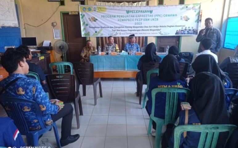 Kegiatan Pelepasan ORMAWA HIMAPBIO FKIP KBM UNIB 2023 dari Universitas Bengkulu ke pemerintah Desa Sari Mulyo Kecamatan Sukaraja Kabupaten Seluma dalam rangka Program Penguatan Kapasitas (PPK) ORMAWA HIMAPBIO FKIP KBM UNIB 2023 untuk Peningkatan Kesehatan dan Pencegahan Stunting Masyarakat Desa Sari Mulyo Melalui Program Konservasi Toga ( Tanaman Obat Keluarga ) dan Sarana Pengembangan Ekonomi Masyarakat yang akan di Laksanakan selama 5 ( Lima ) Bulan dari Bulan Juli Sampai Bulan November 2023, di Desa Sari Mulyo Kecamatan Sukaraja Kabupaten Seluma.