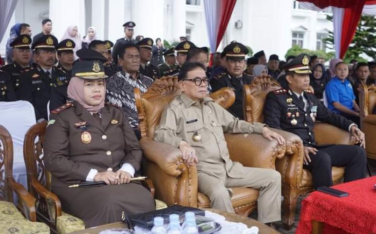 Wartaprima.com - Bupati Kepahiang Dr. Ir. Hidayattullah Sjahid.,M.M.,IPU menghadiri upacara Hari Ulang Tahun (HUT) ke-77 Bhayangkara. Turut hadir Forkopimda Kabupaten Kepahiang, Kepala Dinas/Badan/Kantor, ketua organisasi kemasyarakatan dan organisasi kepemudaan se-kabupaten Kepahiang. Bertindak sebagai inspektur upacara Kapolres Kepahiang AKBP. Yana Supriyatna, S.Ik, Sabtu (01/07/2023) di Halaman Kantor Bupati Kepahiang