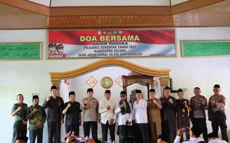 Seluma - Dalam rangka menciptakan menyambut Pemilihan Kepala Desa (Pilkades) serentak tahun 2024, Polres Seluma Polda Bengkulu melaksanakan Doa Bersama di Aula Endra Dharmalaksana Polres Seluma, Selasa (22/08/2023).