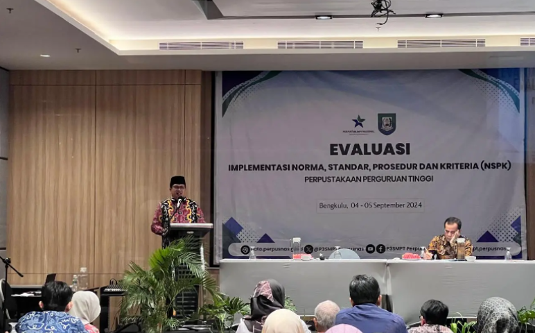 Wartaprima.com - Guna mempercepat dan meningkatkan perpustakaan yang terakreditasi sesuai standar nasional, Perpustakaan Nasional (Perpusnas) RI bekerjasama dengan Dinas Perpustakaan dan Kearsipan (DPK) Provinsi Bengkulu menggelar Evaluasi Implementasi Norma, Standar, Prosedur dan Kriteria (NSPK) Perpustakaan Perguruan Tinggi se-Provinsi Bengkulu.