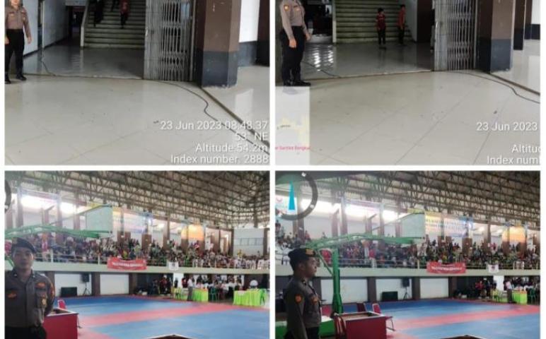 Kota Bengkulu - Guna terciptanya situasi yang aman dan kondusif selama pertandingan, Sat Samapta Polresta Bengkulu Polda Bengkulu, melakukan pengamanan kegiatan Lomba Karate-do Se-Provinsi Bengkulu di Gedung pemuda dan olahraga (GOR) Provinsi Bengkulu, Jumat (23/06/2023).