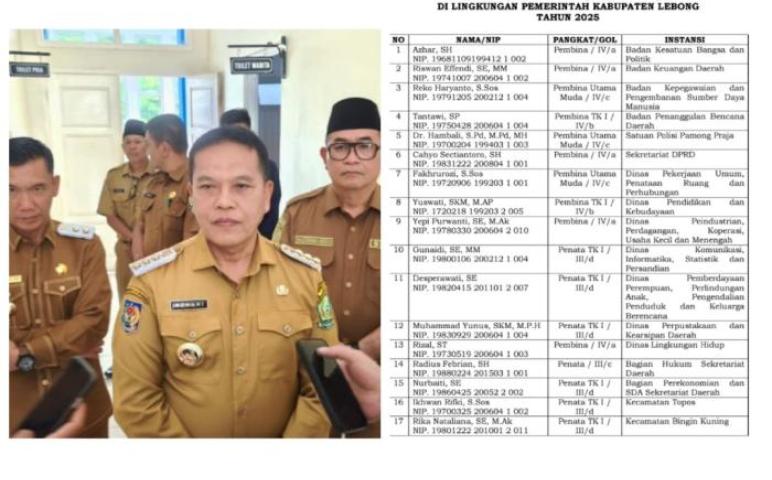 Berikut daftar nama-nama Plt di lingkungan pemerintah kabupaten Lebong tahun 2025.
