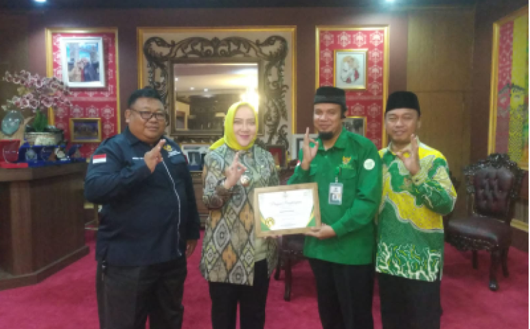 Musi Rawas - Ketua BAZNAS MUSI RAWAS di dampingi waka 1 dan waka 2 menyerahkan penghargaan dari BAZNAS RI kepada Bupati MUSI RAWAS sebagai Kepala daerah pendukung pengelolaan Zakat terbaik nasional.