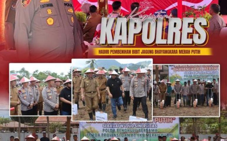 Rejang Lebong - Kapolres Rejang Lebong AKBP Florentus Situngkir, S.I.K. menghadiri kegiatan pembenihan bibit jagung Bhayangkara Merah Putih di sebagai wujud sinergitas Polda Bengkulu, Pemda Provinsi Bengkulu, dan PT YKB Merah Putih dalam mendukung ketahanan pangan nasional.