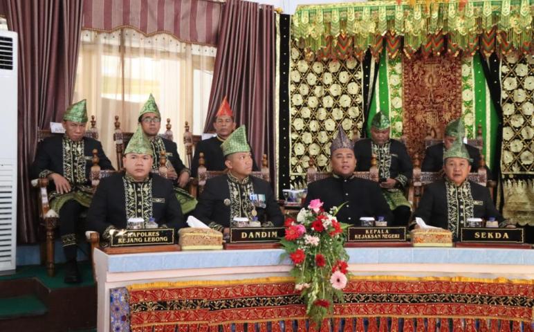 Rapat Paripurna dipimpin oleh Ketua DPRD Kabupaten Rejang Lebong Mahdi Husen, S.H., dan kegiatan juga dihadiri oleh Gubernur Bengkulu diwakili oleh Kadis PMD Provinsi Bengkulu, Bupati Rejang Lebong, Wakil Bupati Rejang Lebong, Kapolres Rejang Lebong, Dandim 0409/RL dan tamu undangan lainnya.