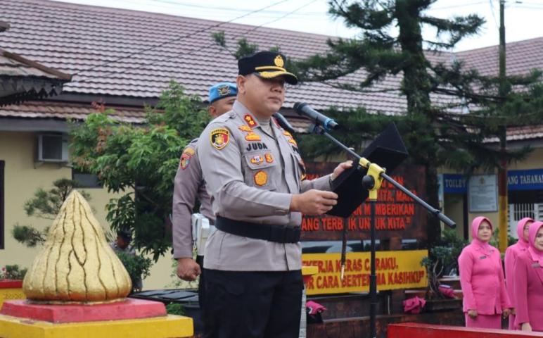 Rejang Lebong – Kapolres Rejang Lebong Polda Bengkulu AKBP Juda Trisno Tampubolon, S.H, S.IK, M.H., memimpin upacara Serah Terima Jabatan (Sertijab) Kabag Ops, Kabag Ren dan Kasat Samapta Polres Rejang Lebong.