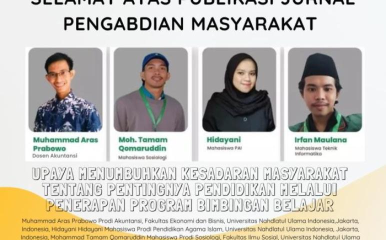 Makassar, Wartaprima.com - Kolaborasi antar Dosen dan Mahasiswa Universitas Nahdlatul Ulama Indonesia (Unusia) yang tergabung ke dalam kelompok KKN MD-II-06 berhasil terbitkan Jurnal Pengabdian Masyarakat dengan judul "Upaya Menumbuhkan Kesadaran Masyarakat tentang Pentingnya Pendidikan Melalui Penerapan Program Bimbingan Belajar".
