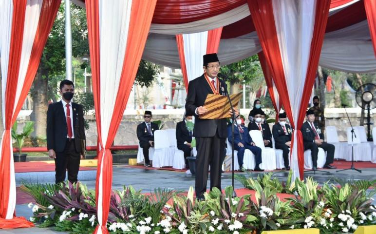 Imam Besar Masjid Istiqlal Prof. Dr. KH. Nasaruddin Umar, M.A dalam arahannya sebagai Inspektur ucara menyampaikan rasa syukur atas kemerdekaan ke-77 Republik Indonesia.