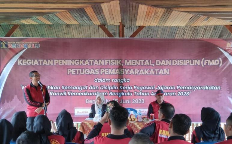 Kota, Bengkulu - Kepala Rumah Tahanan Negara Kelas IIB Bengkulu Farizal Anthony yang diwakili oleh petugas mengikuti kegiatan Pembinaan fisik, mental dan disiplin yang diselenggarakan oleh Divisi Pemasyarakatan kantor wilayah kementerian hukum dan ham Bengkulu pada, Kamis (15/06) di pemandian Napal Jungur, Seluma.