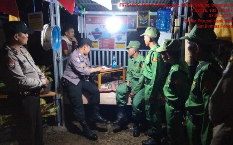 Personel Polres Kaur dan Kasat Binmas Iptu I Nengah. S mendatangi Pos Kamling setempat dan mengimbau agar Pos Siskamling tetap di aktifkan.