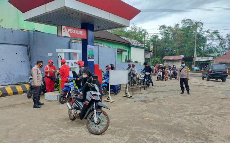 Rejang Lebong, Wartaprima.com - Personel Polres Rejang Lebong Polda Bengkulu kembali melakukan pemantauan dan pengamanan penyaluran Bahan Bakar Minyak (BBM) di SPBU 24.391.14 Simpang Nangka Kecamatan Selupu Rejang, Selasa (13/9/2022).