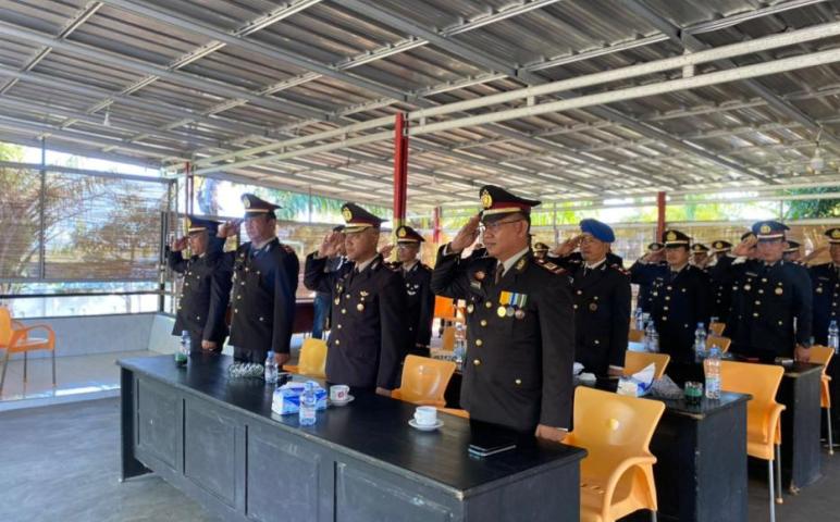 Kaur - Jajaran Polres Kaur Polda Bengkulu, mengikuti Upacara Peringatan Hari Lahir Pancasila tahun 2023, yang diikuti secara virtual, Kamis (1/6/2023) pagi.
