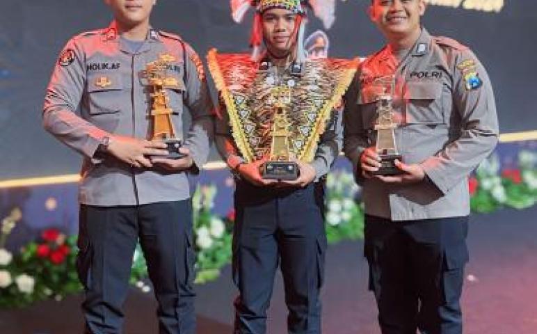 Briptu Holik Aldro Firmansyah personel Polres Rejang Lebong Polda Bengkulu menerima juara ketiga lomba Video Tiktok TNI - Polri dalam rangka Awarding Day Lomba Kreasi Setapak Perubahan Polri Tahun 2024.