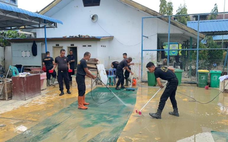 Langkat — Personel Satuan Brimob Polda Sumatera Utara melaksanakan kegiatan pembersihan lingkungan sekolah yang terdampak banjir di SMA Negeri 1 Tanjung Pura, Kabupaten Langkat, Minggu (28/12/2025). Kegiatan ini difokuskan pada ruang kelas, halaman sekolah, saluran drainase, serta fasilitas penunjang pendidikan lainnya yang dipenuhi lumpur, sampah, dan sisa material banjir, guna memulihkan kondisi sekolah agar dapat kembali digunakan oleh para siswa dan tenaga pendidik.