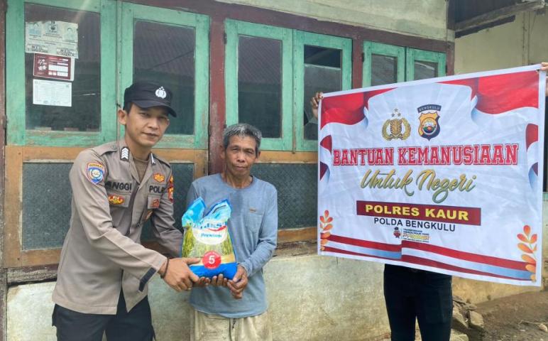 Kaur - Polsek Kaur Utara Polres Kaur Polda Bengkulu kembali menyalurkan bantuan sosial kepada warga kurang mampu dan atau yang membutuhkan, Jumat (7/4/2023).
