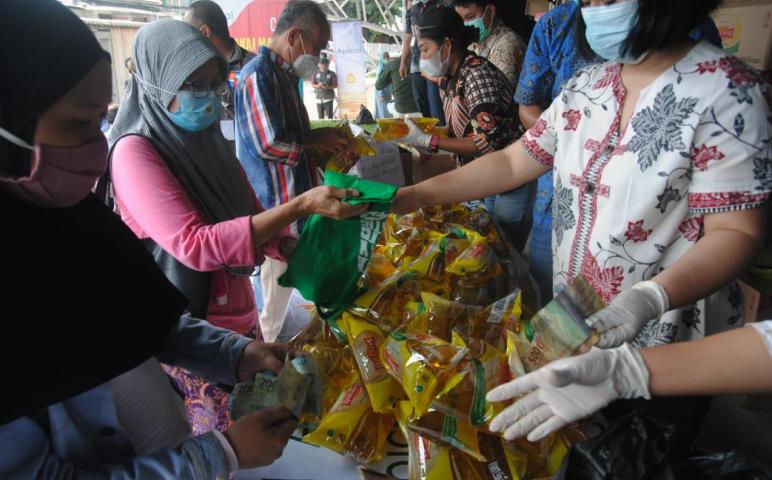 Foto: Sejumlah warga membeli minyak goreng kemasan saat operasi pasar murah minyak goreng di Blok F Trade Center, Pasar Kebon Kembang, Kota Bogor, Jawa Barat, Jumat (31/12/2021). Pemerintah menyediakan 11 juta liter minyak goreng dalam operasi pasar di seluruh Indonesia yang dijual dengan harga Rp14 ribu per liter dalam rangka stabilisasi kenaikan harga minyak goreng dan membantu masyarakat mendapatkan harga yang lebih terjangkau. ANTARA FOTO/Arif Firmansyah/nym.