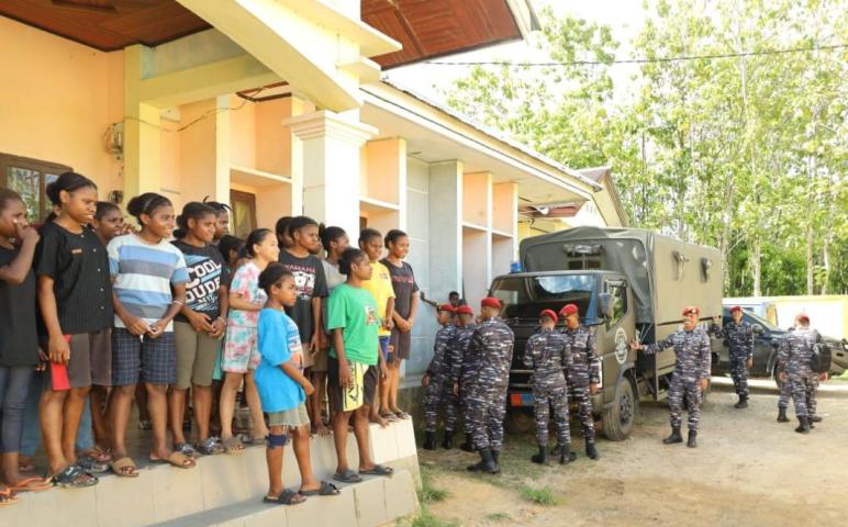 Kegiatan berlangsung dengan penuh kehangatan dan kebersamaan, serta ditutup dengan foto bersama sebagai simbol tali kasih antara prajurit Kopaska dan anak-anak Panti Asuhan.
