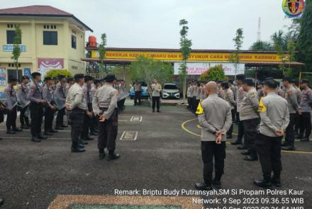 Kapolres Kaur, Pimpin Pengecekan Apel Konsolidasi Pleton Dalmas Awal,…