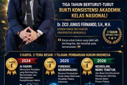 Dosen FH UNIB Cetak Hattrick Juara I Nasional LKTI IKAHI 2024–2026, Bukti…