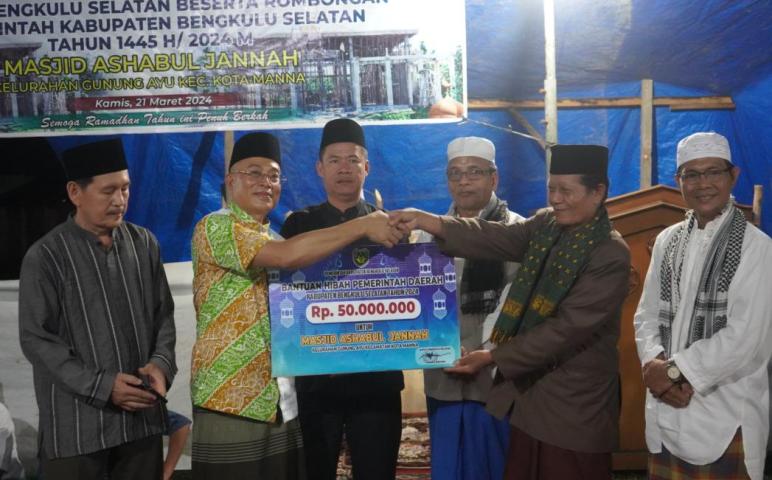 Sementara ditempat terpisah, Wakil Bupati Rifa’i Tajuddin juga melaksanakan Safari Ramadhan di Masjid As Shodiqin Desa Ketaping Kecamatan Manna, Beliau secara simbolis juga menyerahkan bantuan hibah Pemerintah Daerah untuk masjid tersebut senilai Rp. 100.000.000,- (Seratus Juta Rupiah).