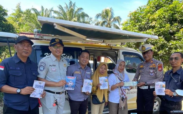 Jasa Raharja Bengkulu Bersama Mitra Sosialisasikan Pasal 74 UU No. 22 Tahun 2009 Tentang Lalu Lintas dan Angkutan Umum