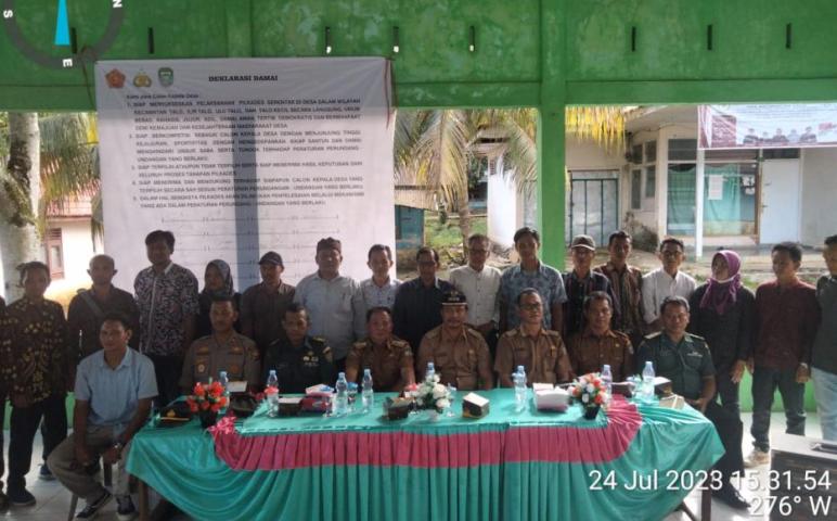 Seluma- Jelang pelaksanaan Pemilihan Kepala Desa (Pilkades) serentak yang dilaksanakan, Pemerintah daerah dan Polres Seluma gelar deklarasi damai di gedung Pendopo kecamatan Talo, Senin (24/07/2023) Siang.