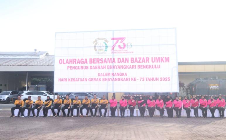 BENGKULU – Dalam rangka memperingati Hari Kesatuan Gerak Bhayangkari (HKGB) ke-73 Tahun 2025, Polda Bengkulu bersama Bhayangkari Daerah Bengkulu menggelar kegiatan olahraga bersama dan bazar UMKM Bhayangkari di Lapangan Anton Soedjarwo, Selasa (14/10/2025).
