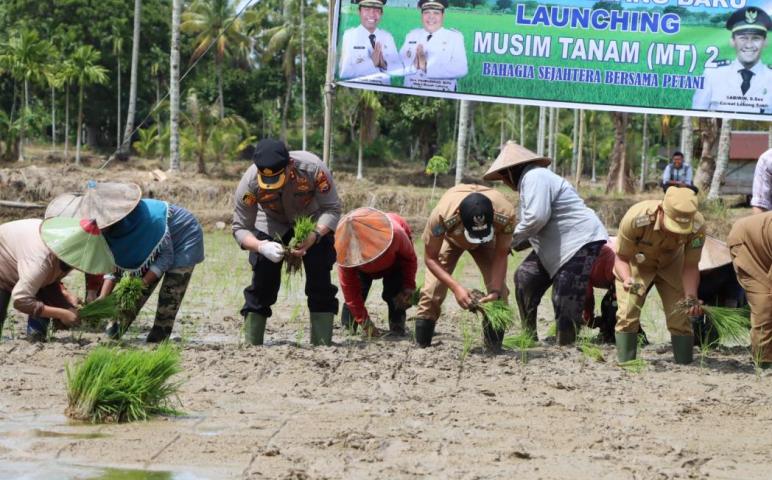 Lebong - Kapolres Lebong Polda Bengkulu AKBP Awilzan bersama Bupati Lebong Kopli Ansori dan unsur Forkopimda Lebong, menghadiri launching program Musim Tanam Kedua (MT2), di Desa Magelang Kecamatan Lebong Tengah Kabupaten Lebong, Selasa (30/5/2023).