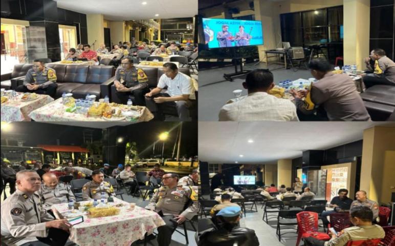 Bengkulu - Kapolresta Bengkulu Polda Bengkulu Kombes Pol Deddy Nata, S.I.K., bersama PJU Polresta Bengkulu, menggelar Nobar secara virtual di ruang selasar halaman Mapolresta Bengkulu kegiatan Kapolri dalam Pameran Lukisan dan Pentas Musik dengan tema : "Yogya Asyik, Yogya Bermusik untuk Indonesia Apik", Jumat (19/1/2024).