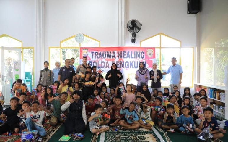 Dalam kunjungannya, mereka bersama tim trauma healing dari Biro SDM Polda Bengkulu memberikan pendampingan khusus kepada anak-anak di sekitar lokasi bencana.