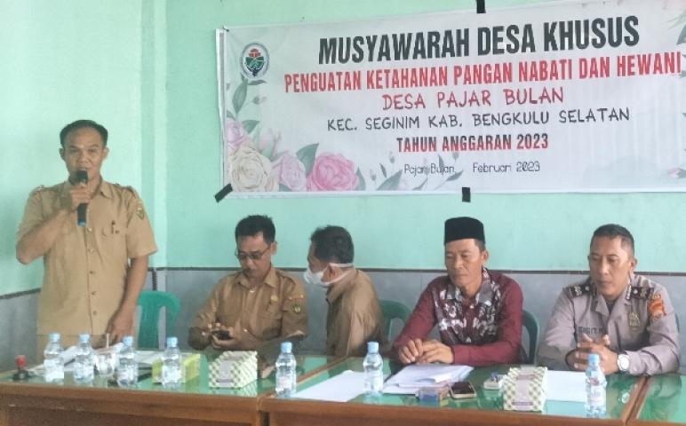 Bengkulu Selatan, Wartaprima.com - Bantuan Langsung Tunai (BLT) Dana Desa (DD) merupakan bantuan sosisial dari Pemerintah Desa melalui Anggaran Pendapatan Belanja Desa (APBDES). Bantuan Langsung Tunai (BLT) Dana Desa (DD) bertujuan untuk mendukung percepatan penghapusan kemiskinan exstrim. Hal tersebut disampaikan Kepala Desa Pajar Bulan Kecamatan Seginim Kabupaten Bengkulu Selatan Dausriwan pada saat musyawarah penetapan KPM BLT DD. Senin (06/02/20230.