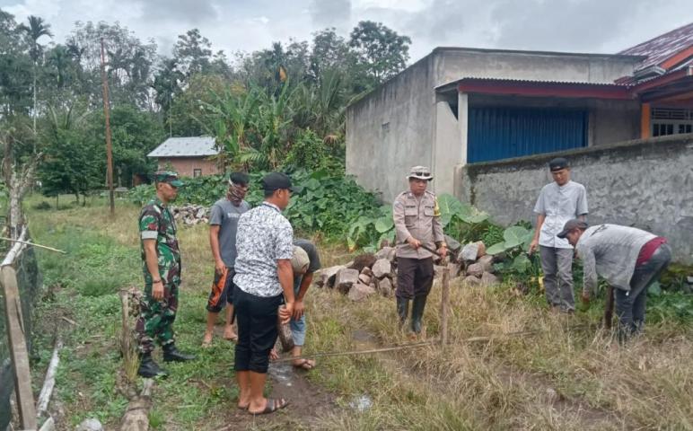 Lebong - Dalam kegiatan sambang untuk monitoring, Bhabinkamtibmas Polsek Lebong Selatan Polres Lebong Polda Bengkulu, Bripka Hartawan, menghadiri titik nol pembuatan jalan gang, di Kelurahan Mubai, Kecamatan Lebong Selatan Kabupaten Lebong, Rabu (22/5/2024).