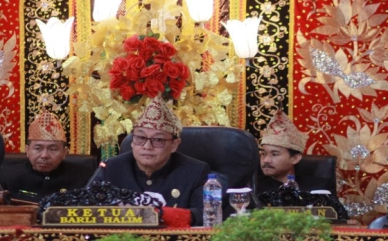 Rapat paripurna istimewa dipimpin Ketua DPRD, Barli Halim, S.E didampingi Wakil Ketua I, Juli Hartono, S.E, dan Wakil Ketua II, Dendi Man Tarmizi, S.E, S.H, dan diikuti Anggota DPRD dari semua unsur fraksi.