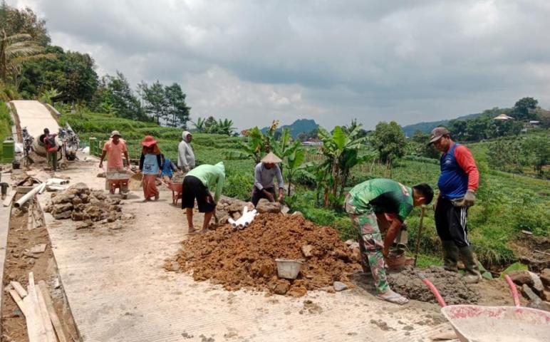 KARANGANYAR — Anggota Satgas TNI Manunggal Membangun Desa (TMMD) Reguler ke-126 Kodim 0727/Karanganyar bersama warga Desa Bandardawung, Kecamatan Tawangmangu, kembali menunjukkan semangat gotong royong yang luar biasa dalam setiap tahap kegiatan pembangunan, Senin (3/11/2025).