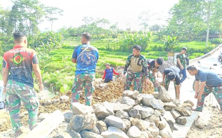 KARANGANYAR — Program TNI Manunggal Membangun Desa (TMMD) Reguler ke-126 Kodim 0727/Karanganyar di Desa Bandardawung, Kecamatan Tawangmangu, terus menunjukkan kemajuan yang signifikan. Pada Senin (3/11/2025), anggota Satgas TMMD, seperti yang terlihat dalam gambar, sedang bekerja keras menyiapkan material untuk pengecoran jalan.