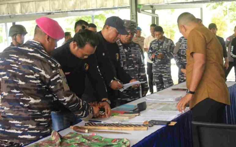 " Setiba di Biak, pelaku dan dan barang bukti sesuai list sebanyak 108 item diserahkan kepada pihak yang berwenang dalam hal ini Polres Supiori untuk proses lebih lanjut," ungkap Danlanal Biak. (Koarmada III)