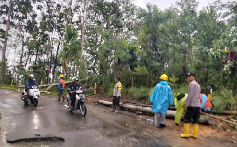 Mendapat laporan dari masyarakat, personel Polsek Lebong Selatan segera bergerak cepat mendatangi lokasi kejadian untuk melakukan pengamanan sekaligus membantu proses pembersihan pohon yang menutupi jalan. Petugas juga segera berkoordinasi dengan pihak PLN guna menangani kabel serta tiang listrik yang terdampak.