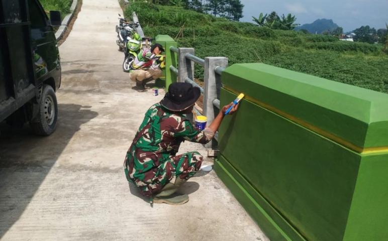 Prajurit Bersama Warga Melaksanakan Pengecatan Jembatan Program TMMD Reguler 126