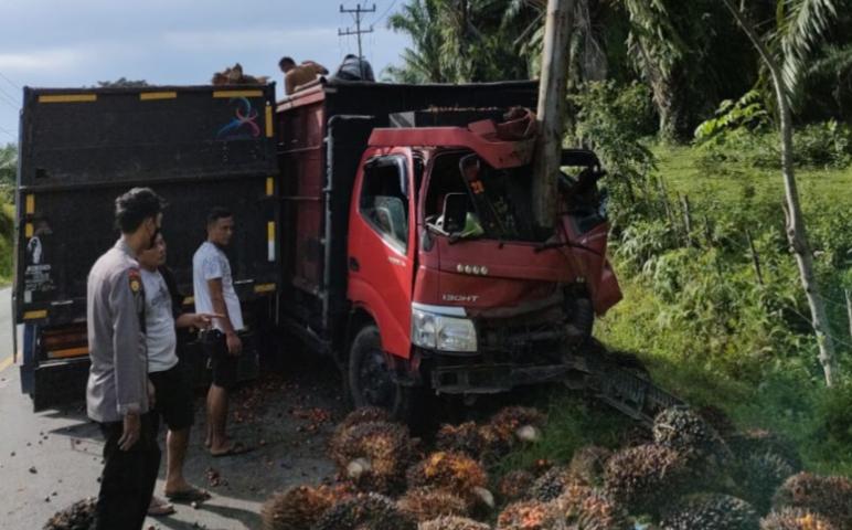 Todi lantas menghubungi rekannya untuk membantu evakuasi muatan sawit di truknya sehingga tidak mengganggu arus lalu lintas.