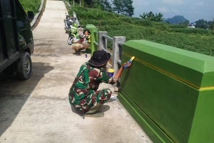 Prajurit Bersama Warga Melaksanakan Pengecatan Jembatan Program TMMD…