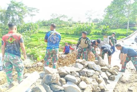 Pemasangan Berem Jalan Terus Dikebut Satgas TMMD Bersama Warga