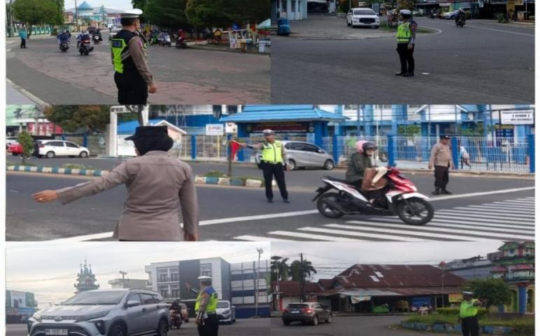 Bengkulu - Personel Sat Lantas Polresta Bengkulu dan Polsek Jajaran melaksanakan kegiatan Commander Wish (Strong Point) di Persimpangan dan lokasi rawan macet, rawan pelanggaran dan rawan laka lantas dalam wilayah hukum Polresta Bengkulu, pagi Kamis (25/1/2024).