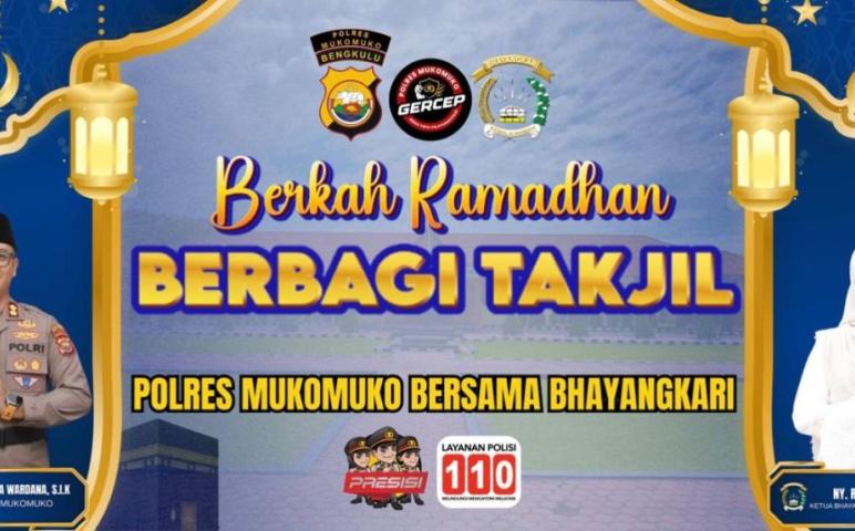 Mukomuko — Dalam rangka mengisi Bulan Suci Ramadhan 1447 Hijriah / 2026 M dengan kegiatan yang sarat nilai kepedulian dan kebersamaan, Polres Mukomuko bersama Bhayangkari melaksanakan program pembagian takjil kepada masyarakat secara rutin setiap hari selama bulan Ramadhan. Kegiatan ini merupakan salah satu program prioritas Kapolres Mukomuko sebagai wujud nyata kehadiran Polri yang humanis dan peduli terhadap masyarakat.