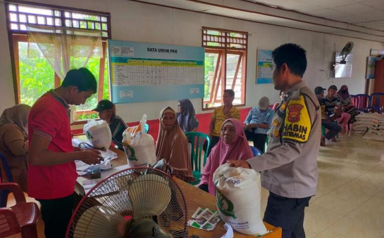Bhabinkamtibmas Polsek Ketahun Memantau Langsung Kegiatan Pembagian Beras Bulog