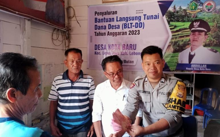 Lebong - Bhabinkamtibmas Polsek Lebong Utara, Polres Lebong Polda Bengkulu Brigpol Ary Saputra, menghadiri kegiatan pembagian bantuan langsung tunai (BLT) yang bersumber dari dana desa (DD) di balai Desa Kota Baru Kecamatan Uram Jaya Kabupaten Lebong, Rabu (17/05/2023).