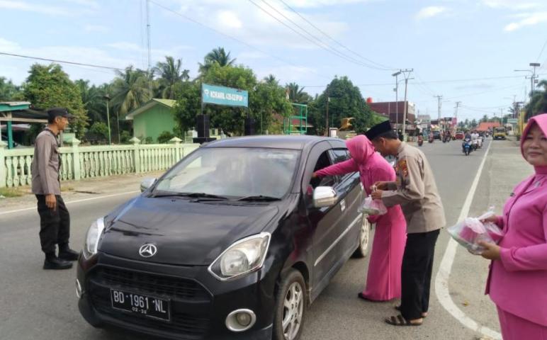 Bulan Suci Ramadhan, Polsek Mukomuko Selatan Bersama Bhayangkari Bagi-Bagi Takjil Kepada Warga