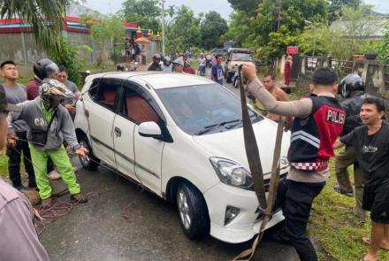 Anggota SAR Ditsamapta Polda Bengkulu Evakuasi Mobil Warga yang Terseret…