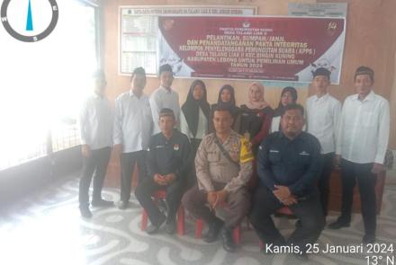 Bhabinkamtibmas Polsek Lebong Tengah Hadiri Pelantikan KPPS Desa Suka Bumi