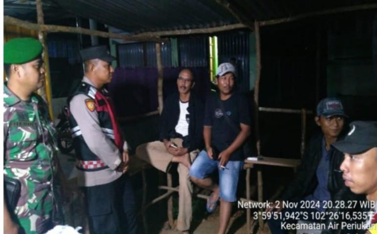 Personil Polsek Sukaraja bersama Personil Koramil 0425-03 Air Periukan melaksanakan giat Patroli Gabungan dalam rangka Sinergitas TNI-POLRI memelihara situasi kamtibmas yang Kondisif di Wilayah Hukum Polsek Sukaraja dan Koramil 0425-03 Air Periukan Minggu (03/11/2024).